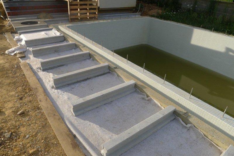 Construcción del vaso. Para la construcción del vaso de la piscina hemos optado por el empleo de hormigón “gunitado”, que  consiste en hormigonar el vaso de la piscina de una sola vez proyectando hormigón mediante una manguera a alta presión sobre fondo y paredes, logrando que el vaso de la piscina sea una sola pieza de hormigón, lo cual mejora la estabilidad del mismo y evita posibles futuras pérdidas de agua debido a asentamientos del terreno.